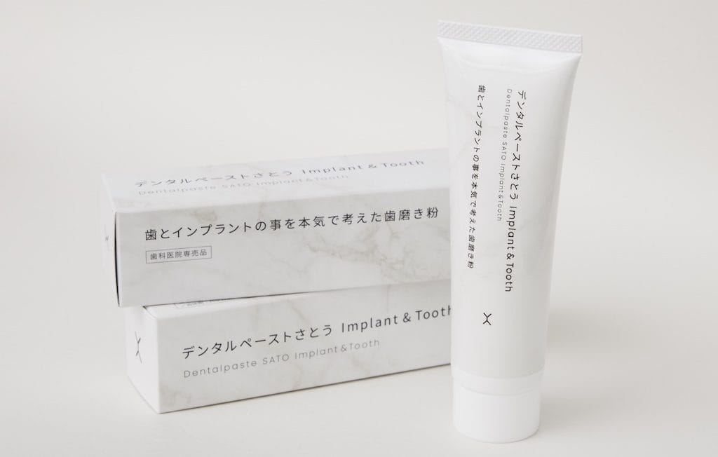 お口の健康を守るためには適切なホームケアとプロフェッショナルケアが大切です。また、適切なケアによって口のなかの細菌叢を良くすることは、虫歯、歯周病、口臭予防にも繋がり、肌や血液、心臓にも良いため、アンチエイジング効果も期待できます。「デンタルペーストさとう Implant & Tooth」は当法人理事長兼恵比寿本院院長の佐藤悠野が監修した、歯とインプラントのことを本気で考えた歯磨き粉です。